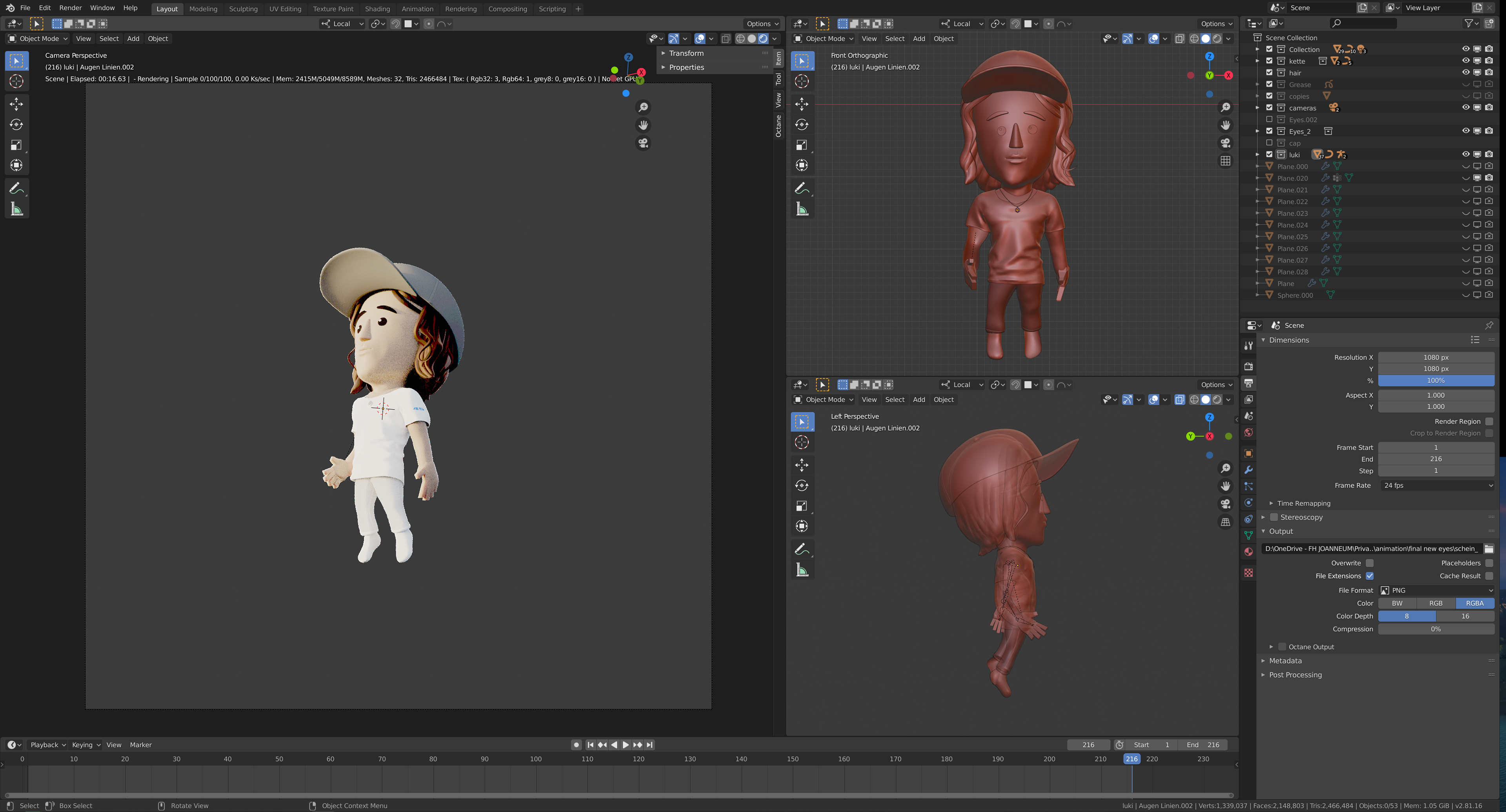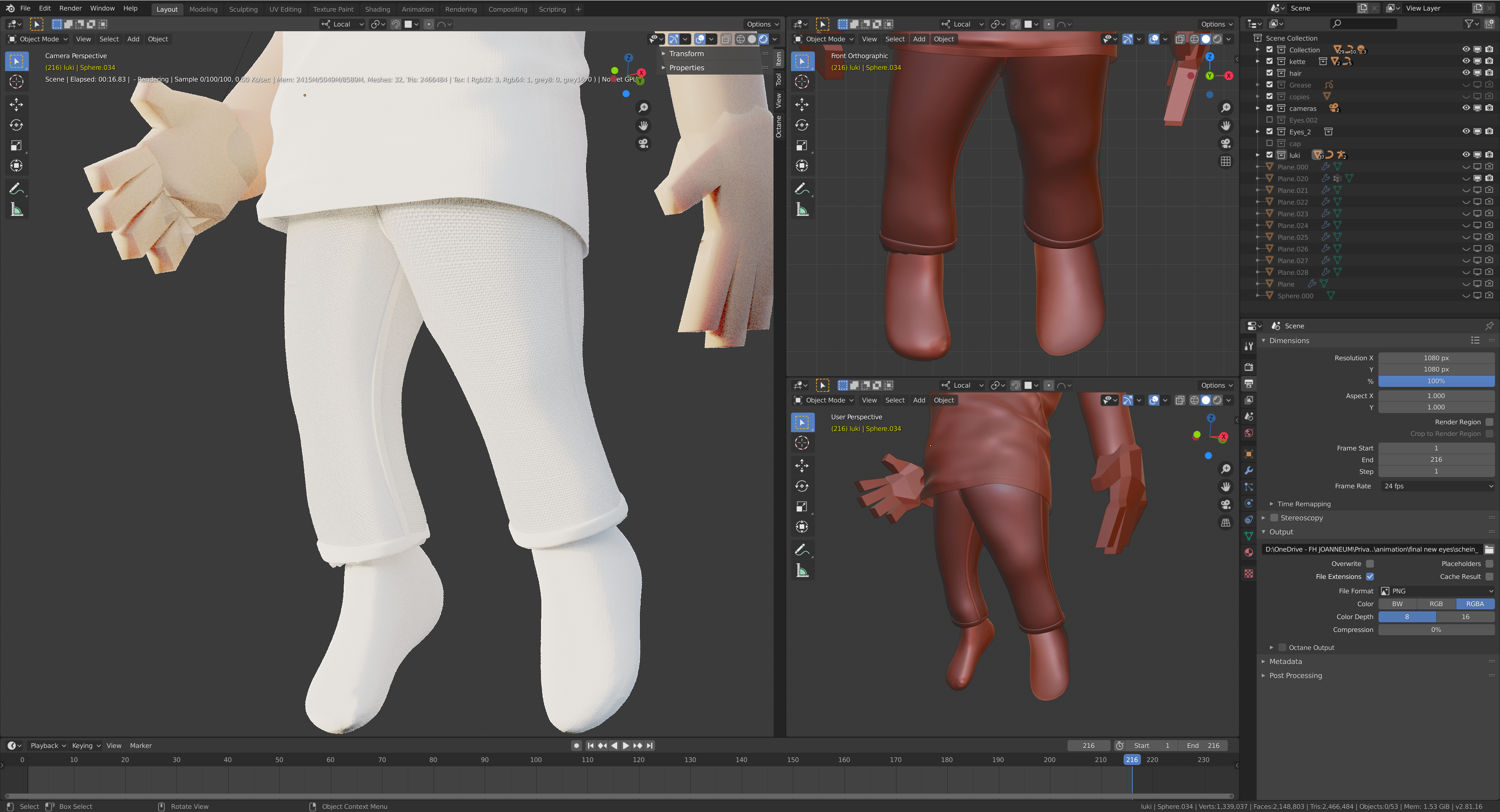 Some shapes had to be changed, to make the character more realistic, like eyes and hands.